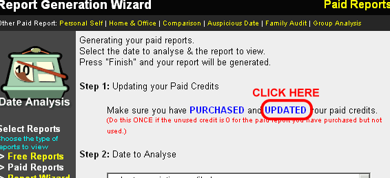 • Click on the Auspicious Date link, which opens up a Report Wizard on the right frame.
