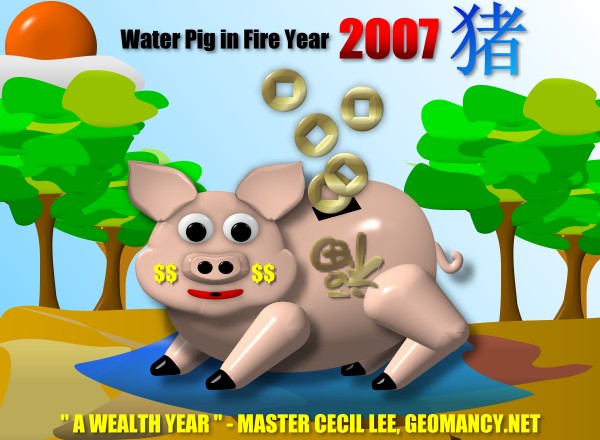 | 2007 General SummaryWater Pig in a Fire Year. As the Fire Year is wealth for the Water Pig, this is a wealth year. Will benefit a Strong Water Pig more than a weak Water Pig.